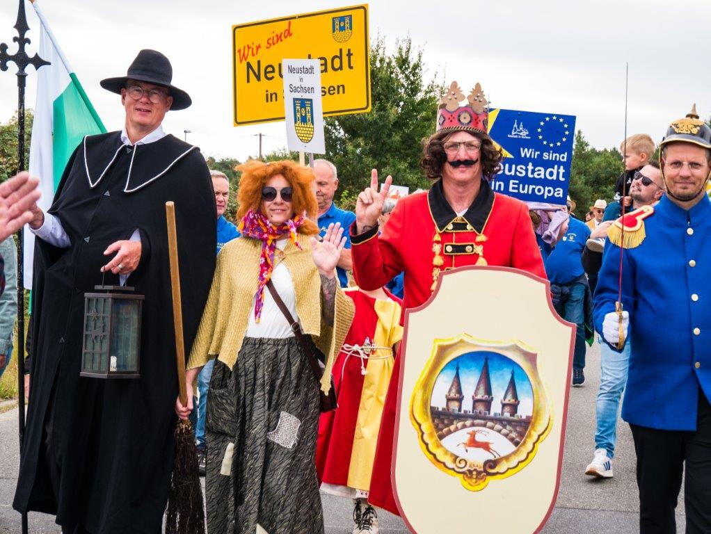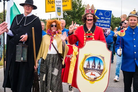 Im Vordergrund des Stadtjubiläums stand, wie auch schon vor 2 Jahren, der große Festumzug. Es war eine logistische Meisterleistung, da dieses Mal noch mehr Teilnehmer an den Start gingen als bei der 775 Jahrfeier. Zahlreiche Vereine, Unternehmen, Privatpersonen, Kitas und Schulen nahmen teil und gestalten ihre Umzugswagen sehr originell und kreativ. Der Festumzug zeigte die Geschichte unserer Stadt und ihre breite Vielfalt. Hinzu kamen die Delegationen von „Neustadt in Europa“. Es entstand ein bunter Mix, den die Besucher am Wegesrand interessiert bestaunen konnten. Sie kamen mit Campingstühlen & Picknickkörben und machten es sich am Straßenrand gemütlich, um den großen Festumzug vorbeiziehen zu sehen. Von den Umzugswagen her schallte Musik & Gesang & Spaß. Bonbons und Süßigkeiten oder auch kleine „Schnäpse“ wurden an die Besucher verteilt. Angekommen auf der Burg ging die Feier dann zum 777. Stadtjubiläum weiter. Vielen Dank an alle Mitwirkenden am Festumzug für dieses tolle Erlebnis und vor allem für dieses „Wir-Gefühl“.